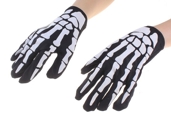 Перчатки Руки скелета черные - короткие перчатки, выполненные в черном цвете с принтом белых костей.