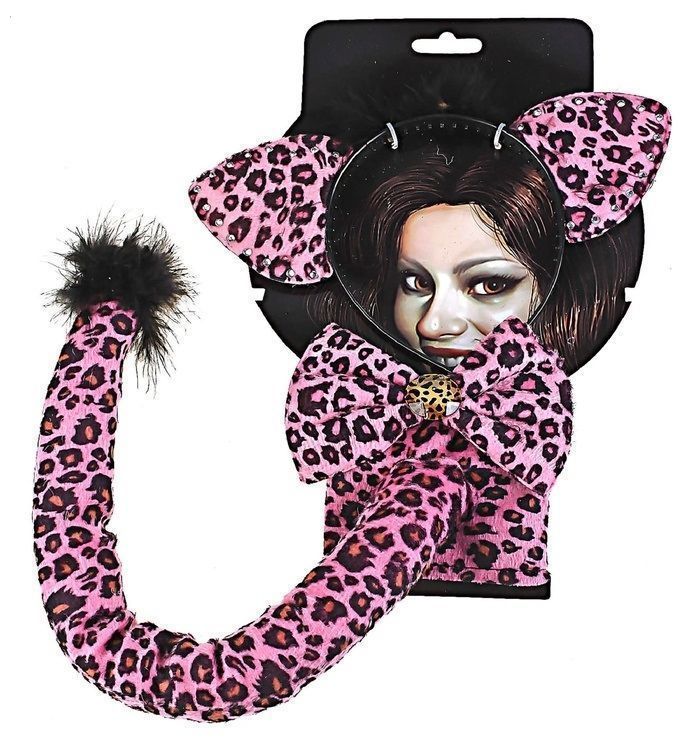 Набор леопарда розовый состоит из ободка с ушкам, хвостика и бантика. Отличный вариант для ролевых игр.