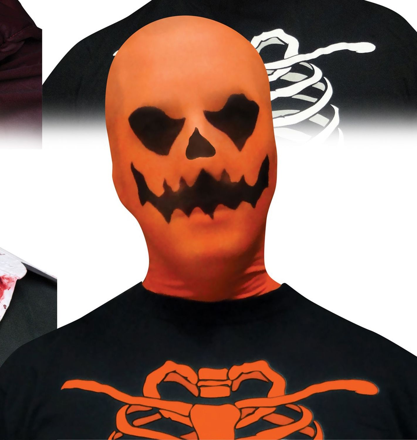 Чулочная маска тыквы - это тонкая маска на всю голову, выполненная в оранжевом цвете. На маске изображена черная морда Хэллоуинской тыквы.
