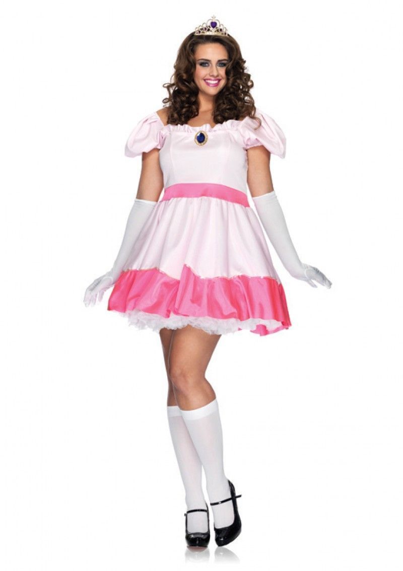 Розовое платьице принцессы выполнено из атласного блестящего материала светло-розового цвета с рукавами-фонариками. К платью прилагаются белые длинные перчатки ,брошь,корона