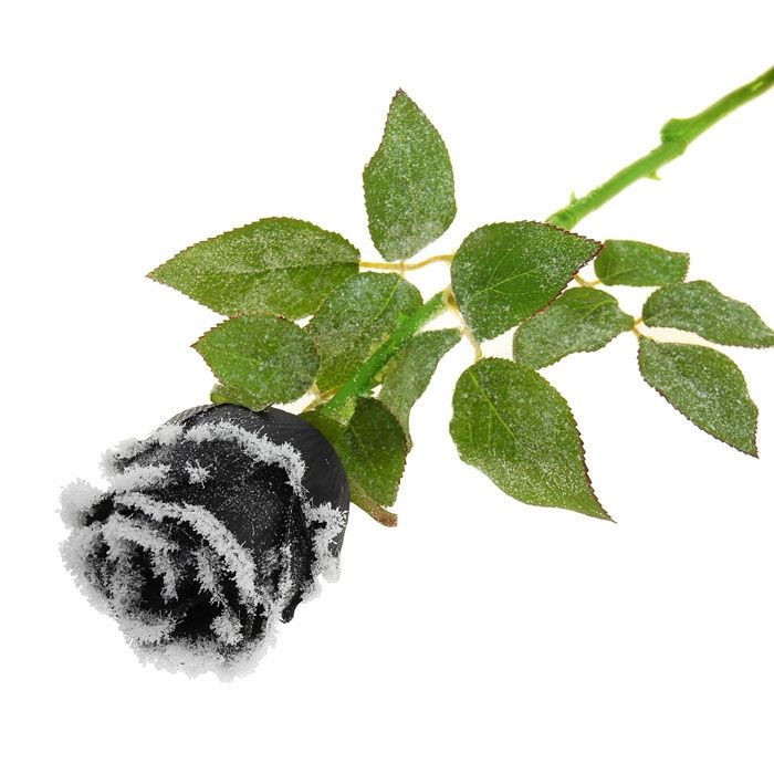 Готическая черная роза - красивый искусственный цветок с черными лепестками, будто припудренный нежным белым снегом. Длина цветка 66 см. Розы не зря носят звание королевы цветов, ведь их изящные бутоны с нежными лепестками не могут не привлечь к себе внимание. Готическая черная роза станет отличным подарком, который не завянет и не лишится своего великолепия.
