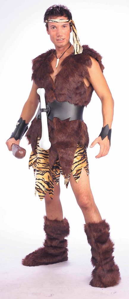 Костюм короля пещеры включает в себя коричневый жилет из искусственного меха, шорты тигровой окраски, черный пояс с застежкой в виде кости, повязку на голову и пушистые накладки на обувь, а также черные кожаные браслеты. Этот костюм позволит вам почувствовать себя настоящим королем древней жизни.
