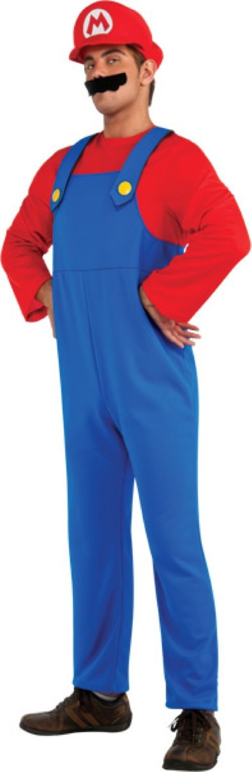 В костюм Марио входит: комбинезон, шапка, усы.