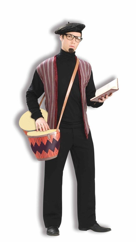Костюм француза музыканта включает в себя черный берет, а также черную футболку с полосатым бордовым жилетом. Музыкальный инструмент в комплект не входит.