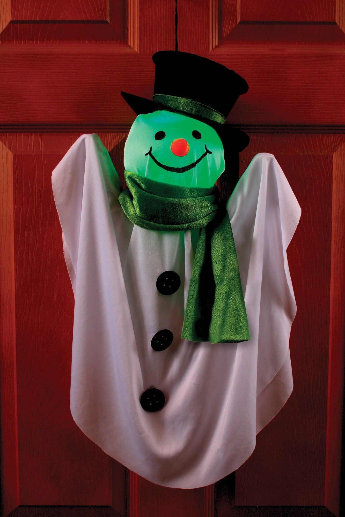 Подвесной милый снеговик со шляпой и шарфом. Меняющий цвета. Подвешивается на петлю на голове. Размер в высоту около 55 см.
