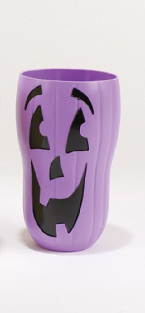 Стакан на Хэллоуин фиолетовая тыква - это забавный высокий стакан, сделанный в виде тыквы для Хэллоуина с вырезанной мордочкой. Стакан выполнен в фиолетовом цвете. Высота стакана около 15 см, диаметр примерно 8 см. Вместительность стакана около 600 мл.