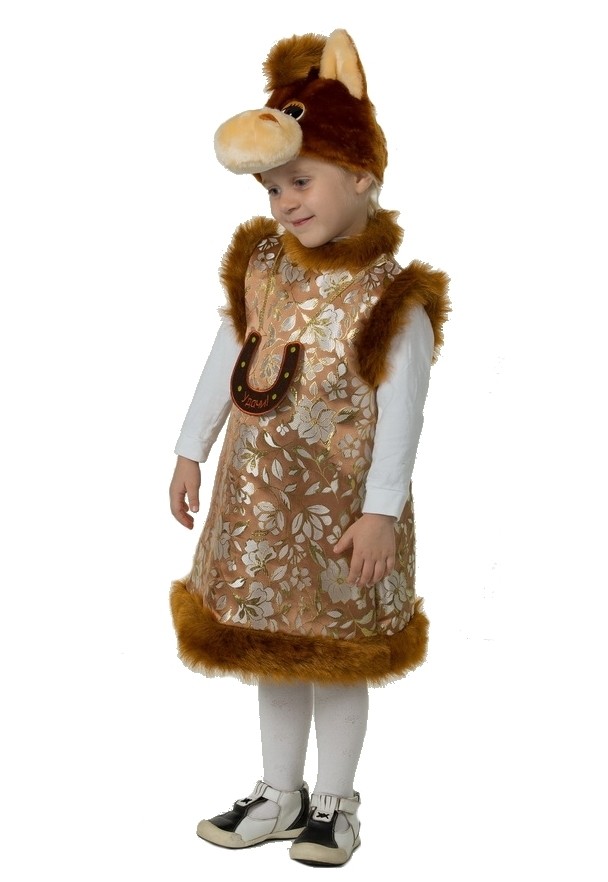 Костюм милой лошадки. В комплекте: платье с подковой, шапочка.
