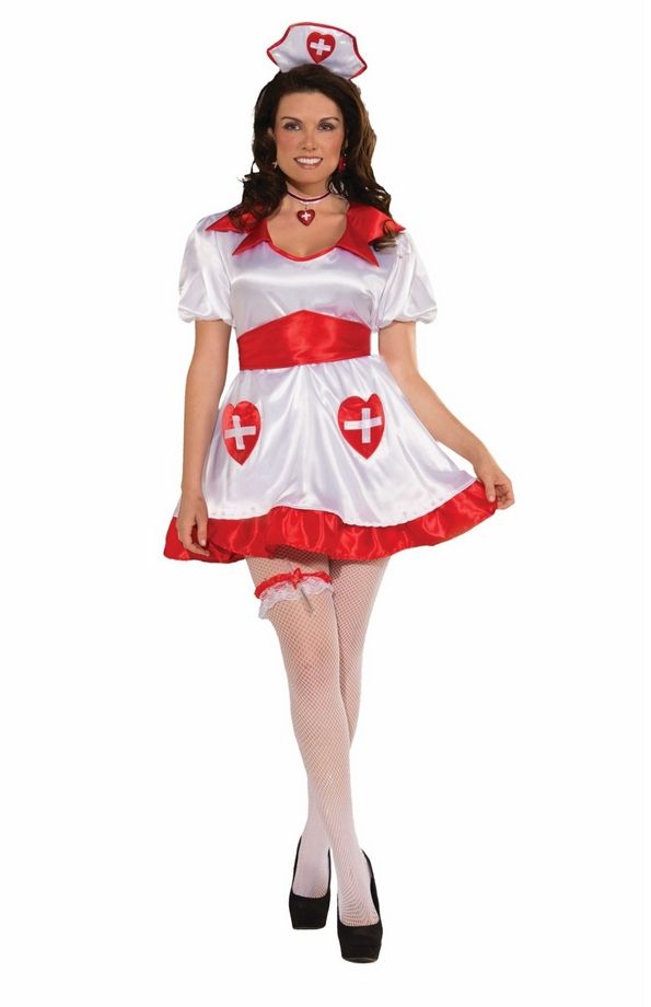 Перед костюмом медсестры-спасительницы ХL не сможет устоять ни один мужчина. Не страшны будут ни уколы, ни капельницы, а все мысли будут только о прекрасной женщине в белом халате. Будьте, пожалуйста, милосердны к своим пациентам, ведь они так беззащитны перед вашей красотой в этом наряде. Костюм медсестры-спасительницы  - это короткое белоснежное платье с красной окантовкой и воротником, а также накладными кармашками-обманками с изображением креста. В комплект входят красный широкий пояс и головной убор. Вы также можете приобрести различные аксессуары к своему костюму на нашем сайте.