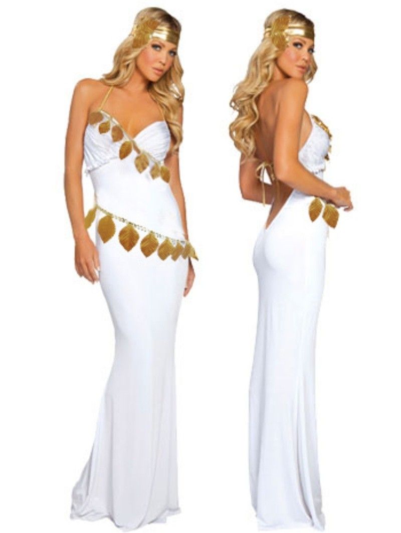 Ослепительный костюм богини Спарты подойдет для любой вечеринки. В комплекте платье украшенное листьями и повязка на голову.