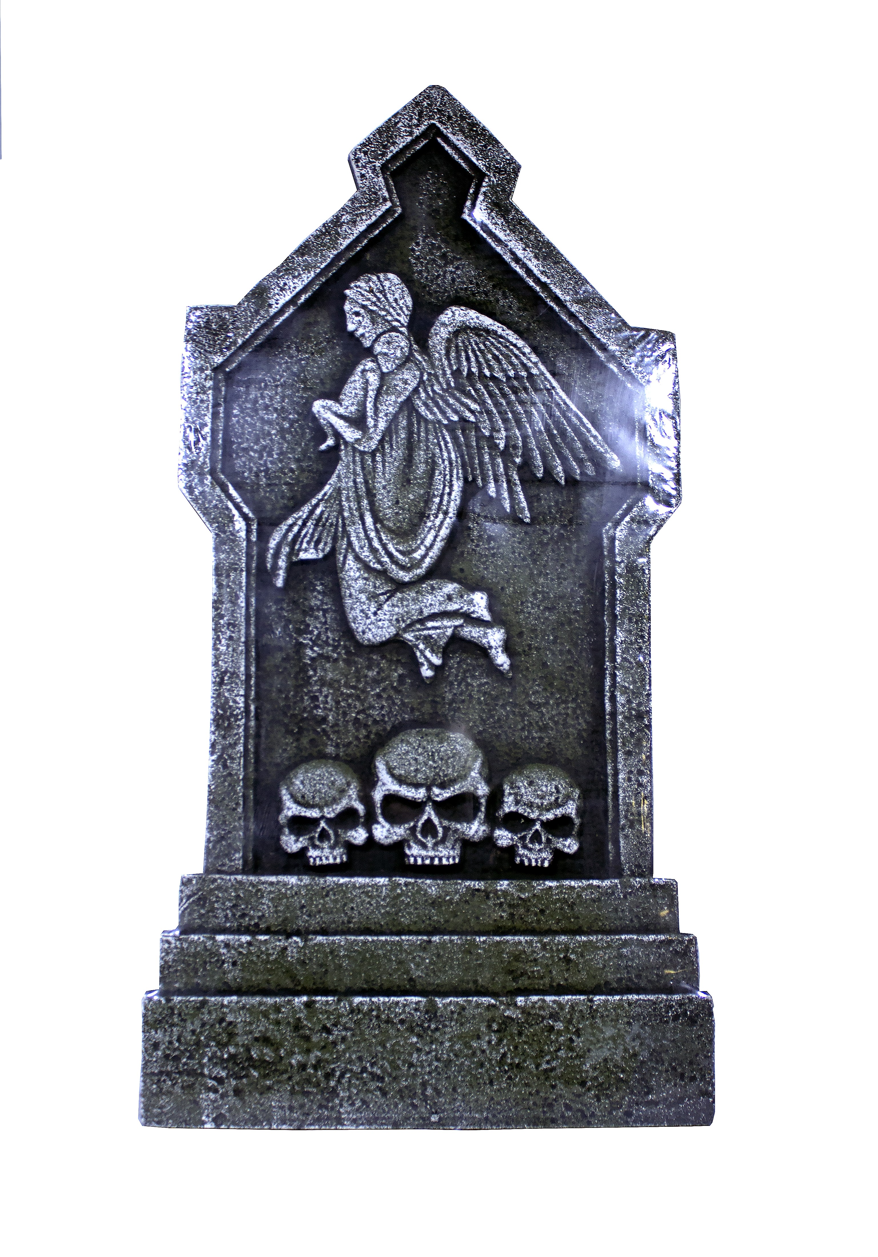 Надгробие с ангелом выполнено в виде тяжелой каменной плиты с изображением ангела и черепов. Надгробие из пенопласта.
