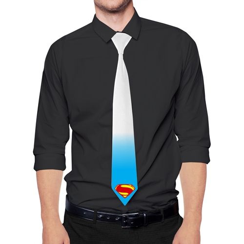Галстук Супермен - прекрасный аксессуар для тематической вечеринки, а также он подойдет для дополнения образа Супермена. Галстук сочетает в себе белый и голубой цвета, низ галстука украшает эмблема Супермена.