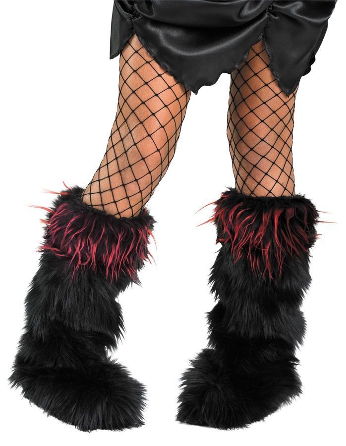 Детские меховые накладки выполнены в чёрно-красном цвете из искусственного меха. Такие накладки прекрасно дополнят множество новогодних костюмов.