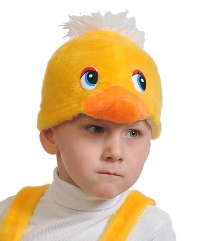 Плюшевая маска Утенка - яркая желтая маска-шапочка, выполненная в виде мордочки утенка с ярким клювом и белой опушкой.