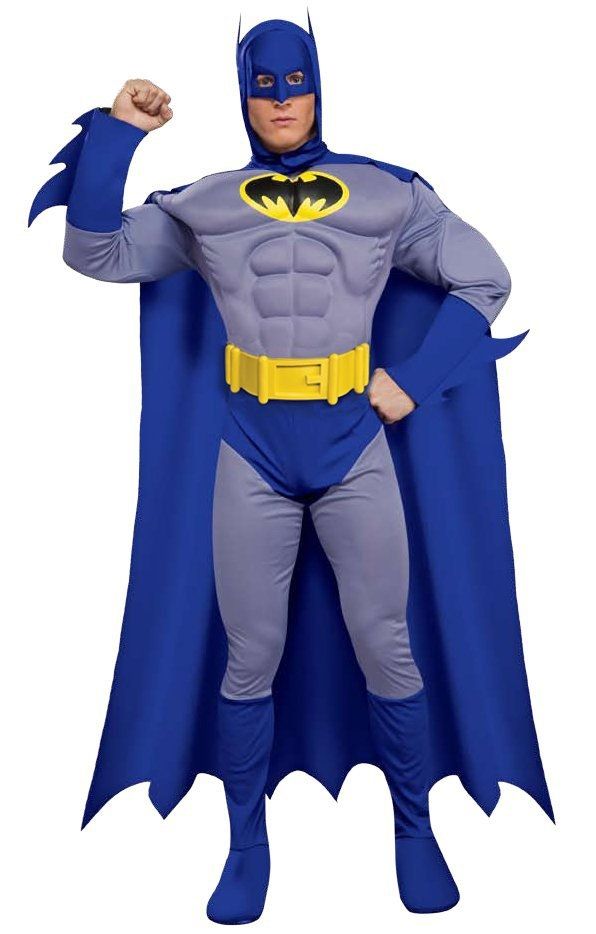 Реалистичный маскарадный костюм Бэтмена в делюкс-комплектации: полностью объемный костюм с "мышцами", притачными сапогами, маска-головной убор с накидкой и пояс.