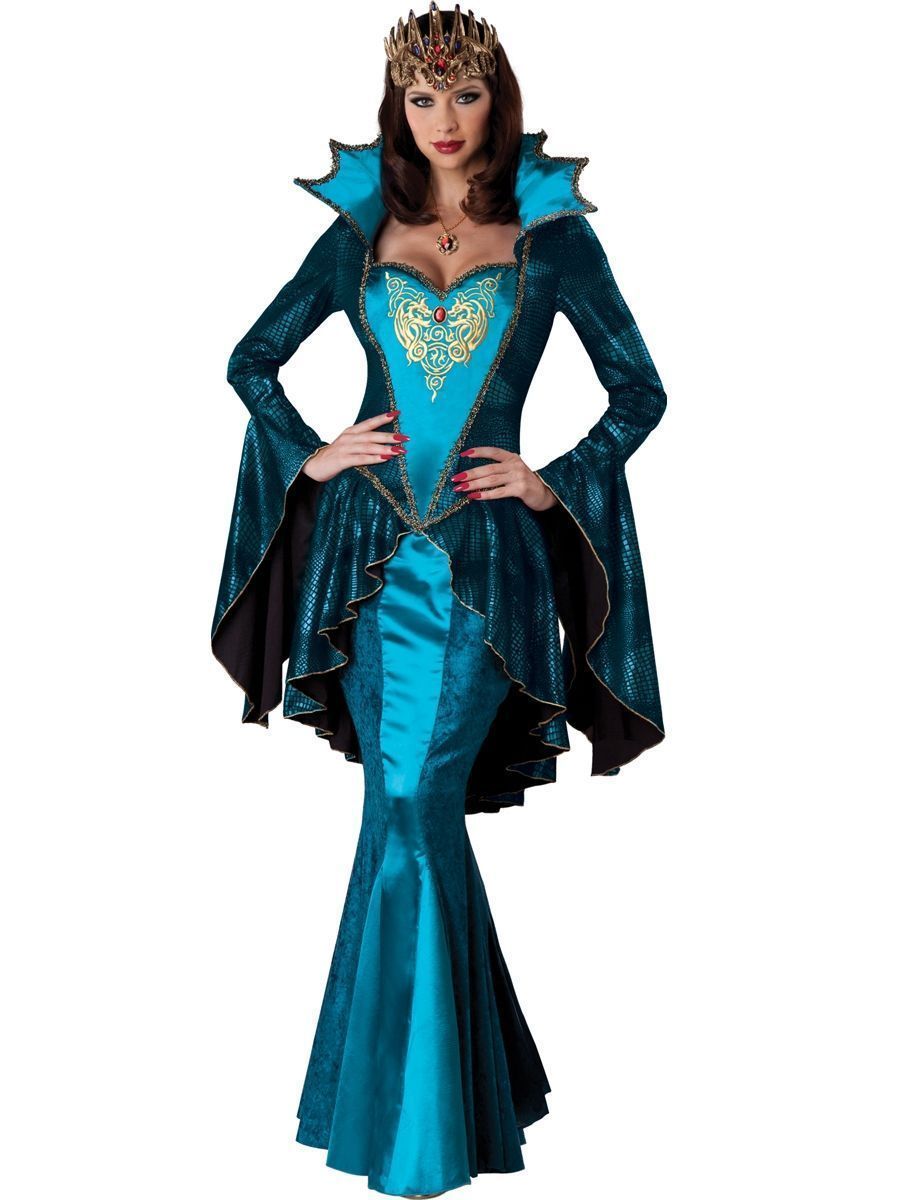 Невероятной красоты костюм средневековый королевы для маскарадных вечеринок или театральных выступлений. Длинное платье в пол с прикрепленным воротником и вышитым лифом выгодно подчеркивает вашу фигуру, а корона на голове не оставляет сомнений, что вы настоящая королева. Шикарный наряд для шикарной женщины.