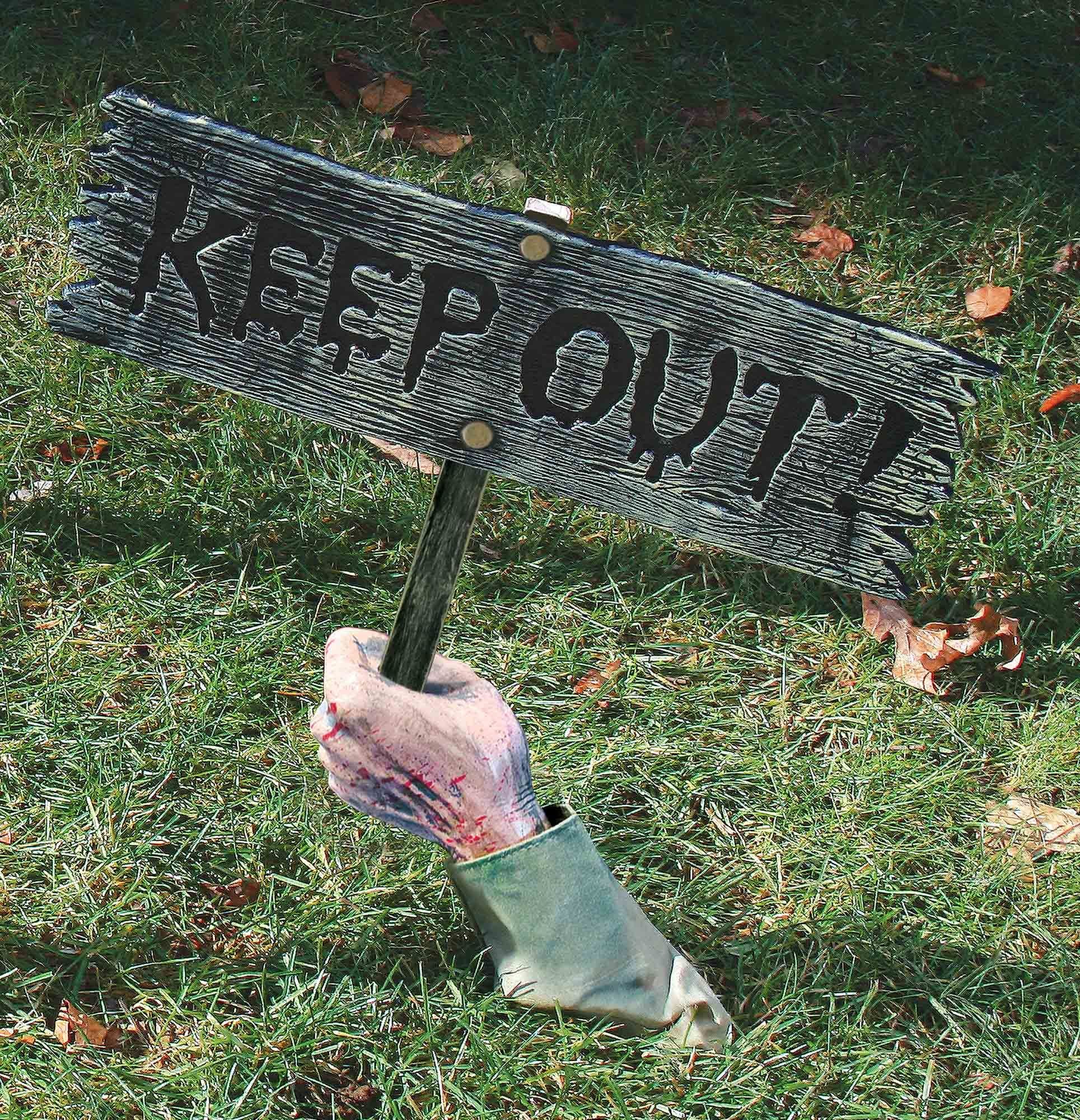 Табличка в руке Keep Out - это торчащая рука в рукаве, которая держит деревянную табличку с надписью " Keep Out", что в переводе означает "Не входить". Такой декорацией можно украсить свой сад или что-нибудь в помещении на Хэллоуин.