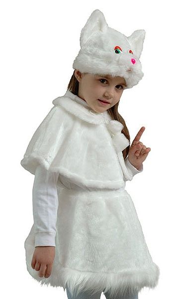 Праздник-маскарад, новый год, театральное шоу будут еще веселее и красивее с девочкой в нашем костюме. Белая юбочка с оборкой и хвостиком + пелерина с завязками на помпонах. Маска шапочка на резинке.