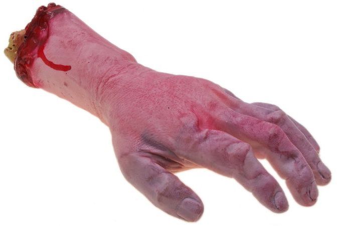 Реалистично оторванная рука станет устрашением окружающих или декорацией для праздников со страшной тематикой, например пятница 13.