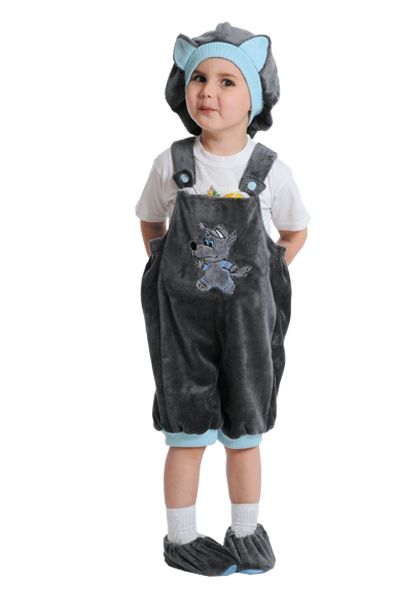 В комплект костюма любопытного волчонка входит сарафанчик, пинетки и берет с ушками.