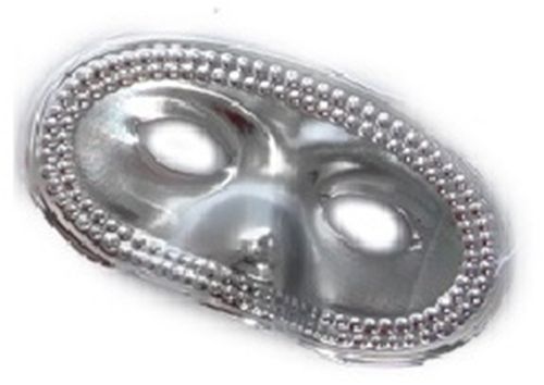 Карнавальная маска выпуклый нос серебристого цвета с выработкой из точек в два ряда. Маска сделана из пластика и имеет размер 16х9 см. Маски идут в наборе по 5 штук. Цена указана за набор.