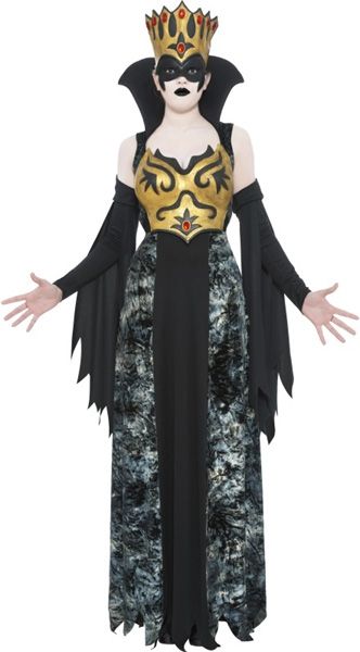 Костюм призрачной королевы прекрасно подойдёт для карнавалов, маскарадов и подобных мероприятий. В комплекте костюма имеется длинное платье, отдельные рукава, латексный лиф и корона с маской. К костюму можно подобрать различные аксессуары, грим для завершения образа.