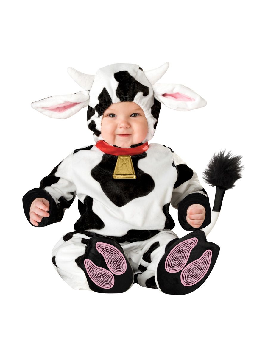 Нарядный костюм коровы для малышей станет прекрасным выбором на День рождение или фотосессию. Черно-белый комбинезон, напоминающий раскраску коровы, пасущейся на лугу, декорирован колокольчиком и хвостом. Капюшон имеет ушки и милые рожки. В комплект также входят мягкие тапочки с антискользящим покрытием на подошве. Комбинезон внизу на кнопочках для быстрой и удобной смены подгузника.