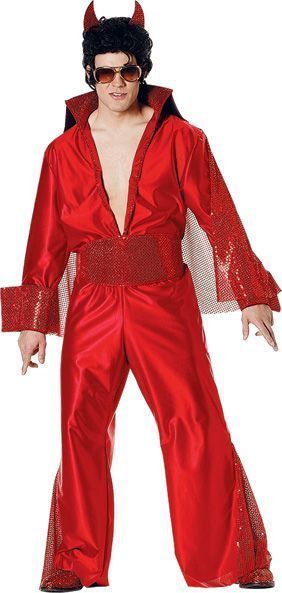 Костюм дьявольского идола выполнен из атласного красного материала. В комплекте имеется комбинезон с прикреплённым плащом, пояс и дьявольские рога. Такой костюм вы можете надеть на клубную вечеринку, для выступлений, маскарадов и Хэллоуина.