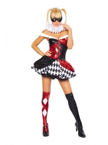Костюм подружки джокера это идеальный выбор для маскарадов и карнавалов. В этом наряде вы будете выглядеть очень привлекательно и забавно. В комплект костюма подружки Джокера входит пышная забавная юбка, топ, маска на глаза и гофрированный воротник.