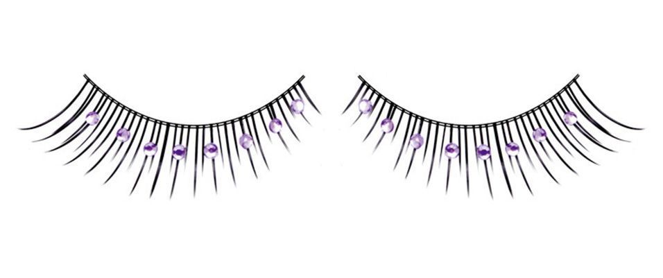 Превосходные ресницы, плавно укорачивающиеся к краю, со стразами фиолетового цвета замечательно подойдут к любому понравившемуся вам образу.
