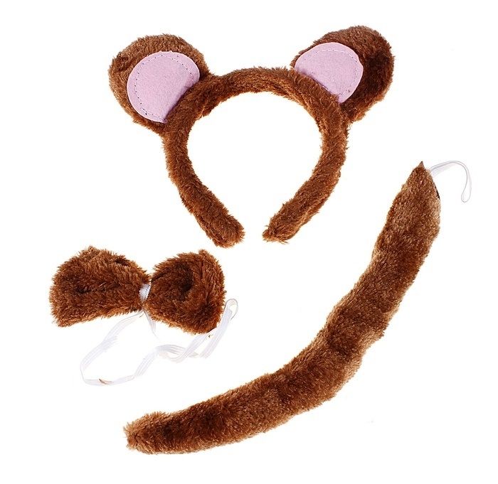 Комплект медвежонок из 3-х предметов: ободок с розовыми ушками, бантик и хвост.