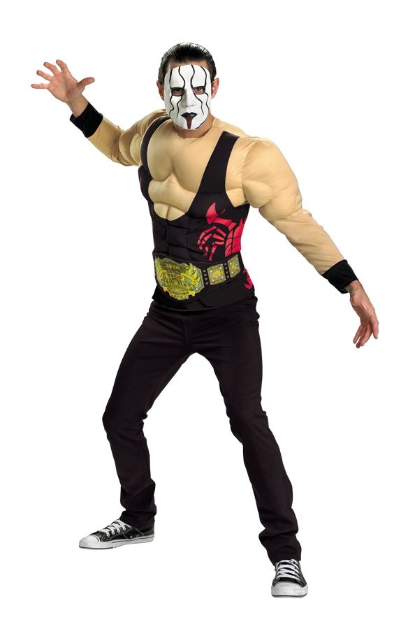 Костюм Борца Стинга - звезды реслинга в США - включает в себя накладные мышцы с майкой и поясом, а также маску. Штаны в комплект не входят. Надев такой костюм, вы будете выглядеть как настоящий борец.