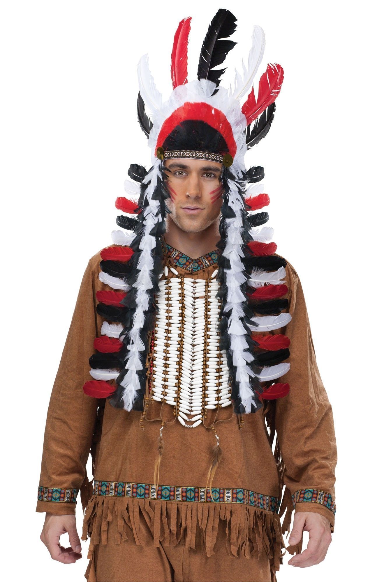 Головной убор индейца трехцветный - это национальный головной убор индейца, который состоит из перьев различной длины. Головной убор сочетает в себе красные, белые и черные цвета.