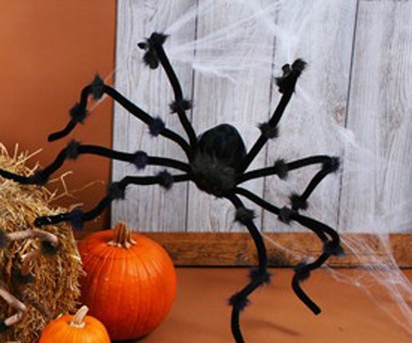 Черный плюшевый паук - это прекрасный аксессуар для Хэллоуина. Паук выполнен из мягкого плюшевого материала в черном цвете, на длинных лапках имеются черные пушистые вставки. Размер паука около 50 см.