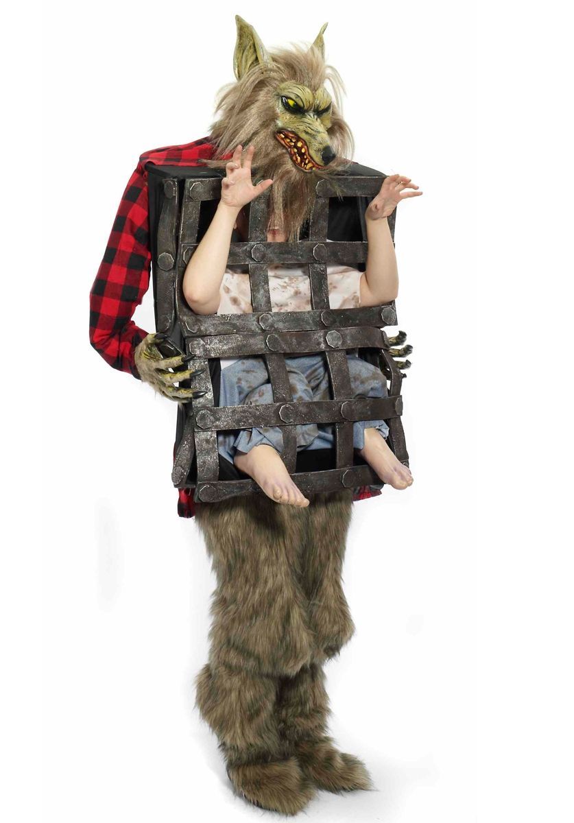 Такое не приснится даже в самом страшном сне. Вы попали в западню, и нет шансов на спасение. Костюм человека в клетке у оборотня представляет собой рубашку с прикрепленной головой и руками оборотня и клетки, с торчащими ногами, создавая иллюзию, что вы попали в плен. Схватите руками проходящего мимо участника вечеринки, заставив его кричать от страха во все горло. Обратите внимание, что меховые брюки в комплект не входят.