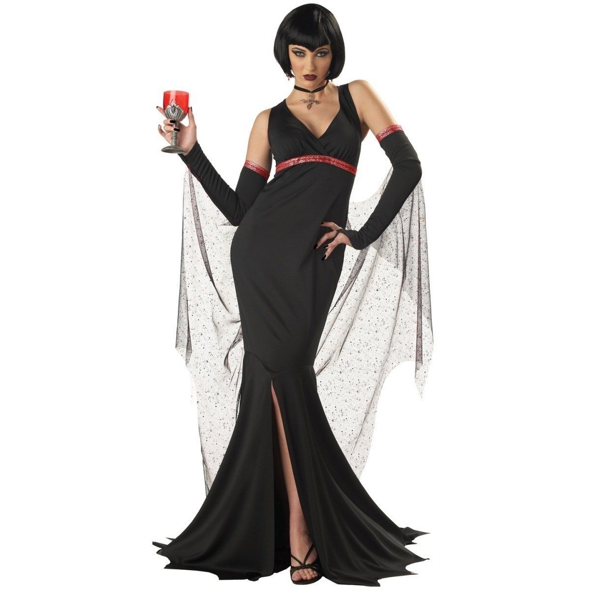 В таком откровенном наряде усилий к обольщению прилагать не придется. В костюм эффектной соблазнительницы входят: платье, накидка, нарукавники, колье.
