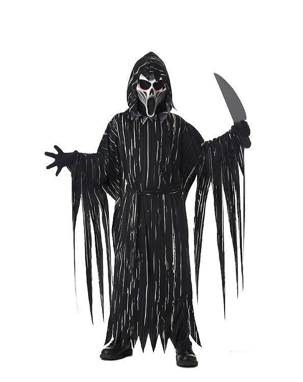 Детский костюм ревущего ужаса - это идеальный костюм для Хэллоуина, Пятницы 13 и других подобных праздников. В костюм входит длинное черное одеяние с большими свисающими рукавами и капюшоном, пояс и жуткая маска. Нож и другие жуткие аксессуары можно приобрести у нас отдельно. Такой костюм подойдет для озорных и бесстрашных мальчишек.