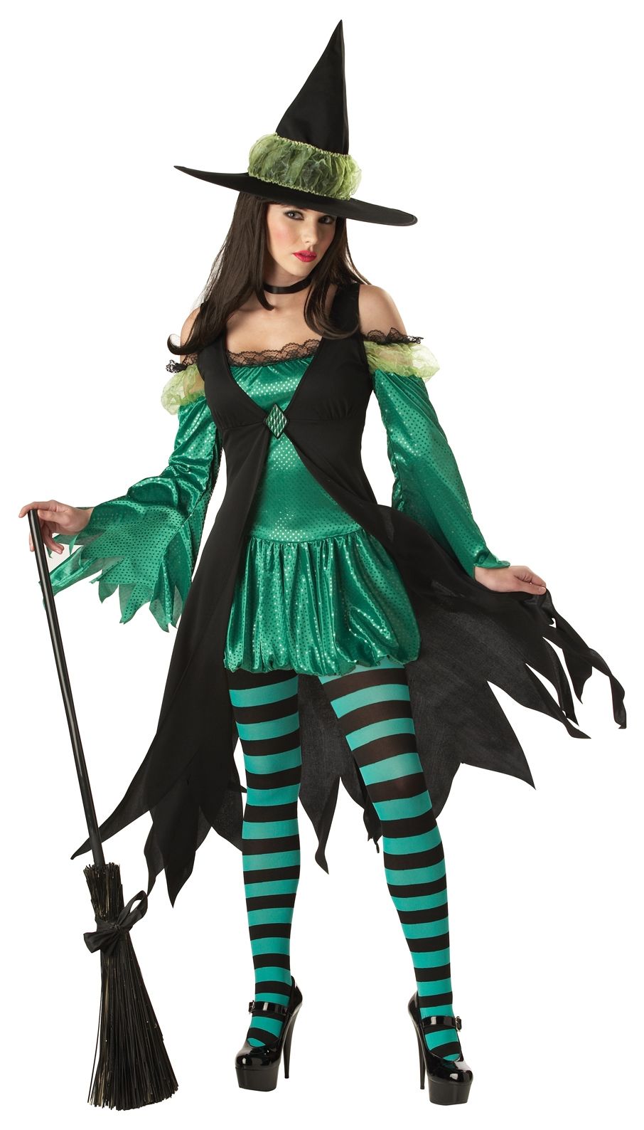 Женщина в наряде изумрудного цвета становится ещё драгоценнее. В костюм изумрудной ведьмы входят: платье, шляпка, жакет с брошкой, колготки.