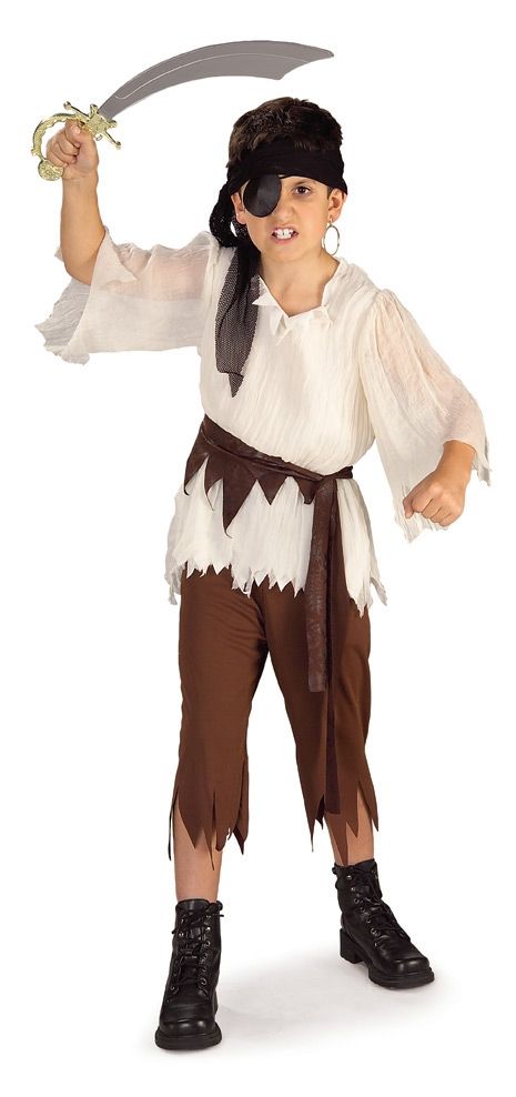 Для подвижного, задиристого мальчика Вы можете подобрать костюм пирата на любой маскарадный праздник. В этот костюм входит: рубашка, брюки, пояс и бандана на голову. Меч в комплект не входит, но его можно приобрести отдельно.
