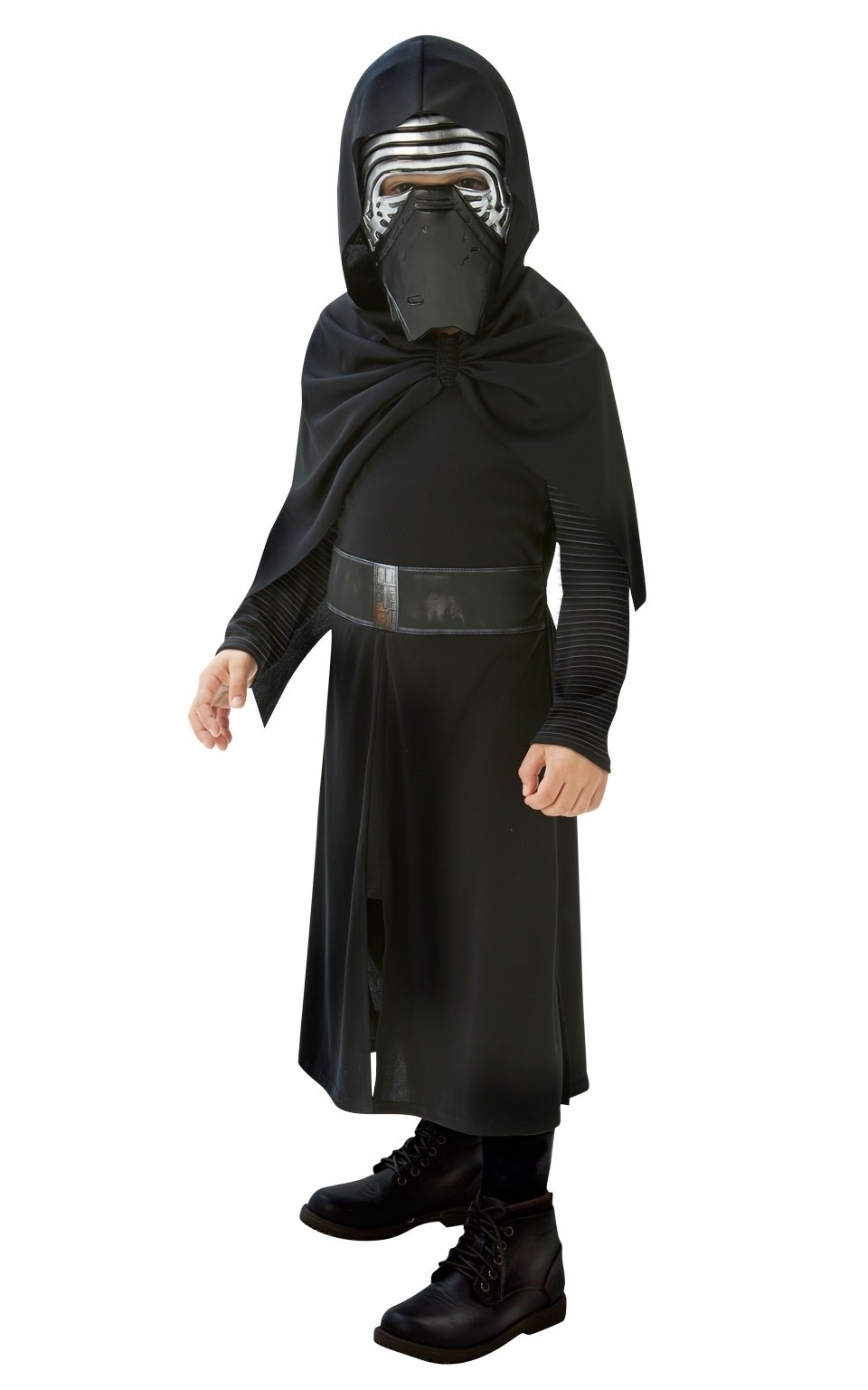 Детский костюм Кайло Рена Star Wars представляет собой образ одного из воинов из саги Star Wars. Костюм включает в себя черную робу с капюшоном и поясом, а также маску на пол лица.