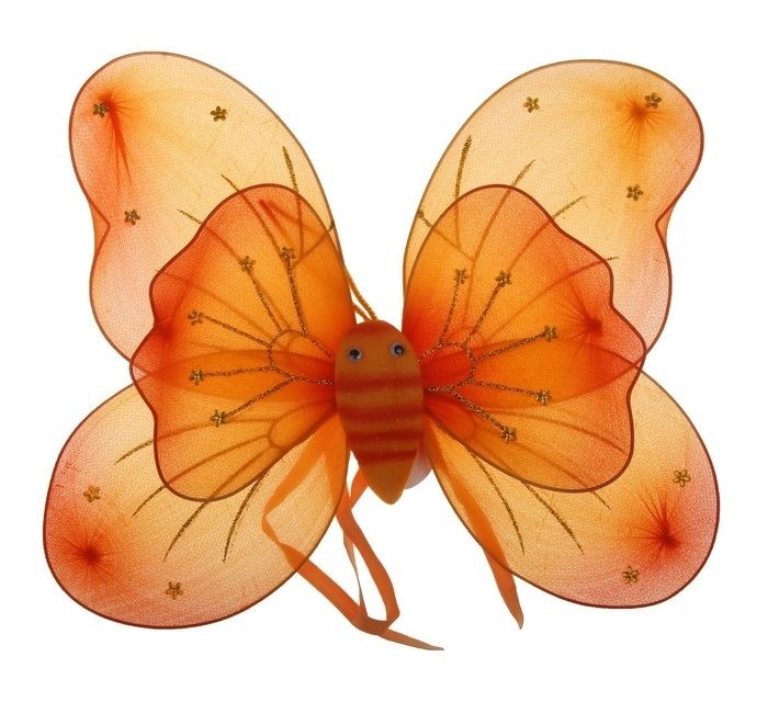 Яркие оранжевые крылья бабочки с цветочками и тонкими золотистыми прожилками добавят в вашу жизнь позитива и радости. Крылышки можно надеть на детский утренник, День рождение или подарить в качестве подарка. Размер крылышек 30х38 см.