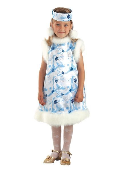 В комплект карнавального костюма маленькой снежинки входит нарядный сарафан и головной убор.