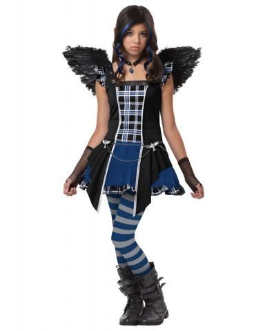 Костюм вороны для девочки. В комплекте: платье, чулки, перчатки в сетку, крылья, колье на шею с амулетом, цепи на платье 2 штуки.