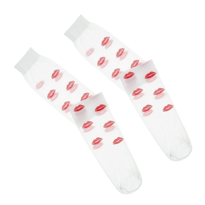 Чулки Красные поцелуйчики - эластичные белые чулки с удобными резинками. Чулки украшены красными поцелуйчиками.