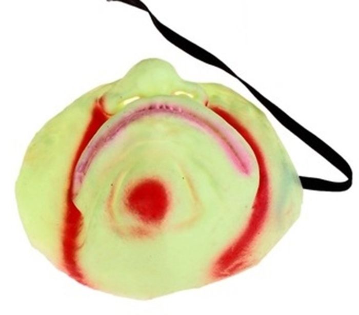 Светоотражающая маска с грустной гримасой. Маска изготовлена из латекса и имеет размер 14х12 см.