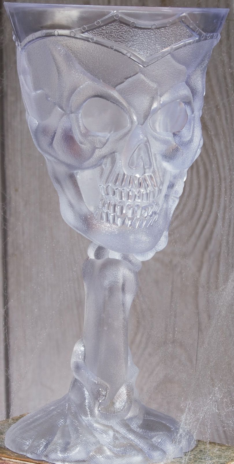Прозрачный кубок для Хэллоуина выполнен с изображением жуткого лица.