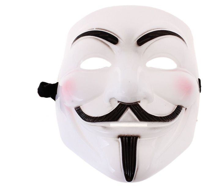 Карнавальная маска Гая Фокса - это маска самого известного участника "Порохового Заговора". Пластиковая маска с усами, бородкой и ехидной улыбкой. В маске имеются удобные прорези для глаз.
