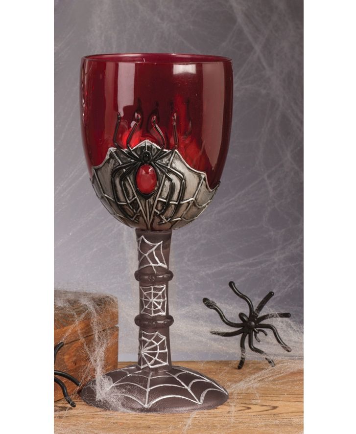 Красный кубок с пауком выполнен в красном цвете. Ножка кубка украшена белой паутиной, питьевая часть украшена серой паутиной, на которой красуется большой паук, тельце которого сделано из драгоценного искусственного красного камня. Этот бокал сможет дополнить костюмы вампиров, а также стать хорошим аксессуаром для Хэллоуина.