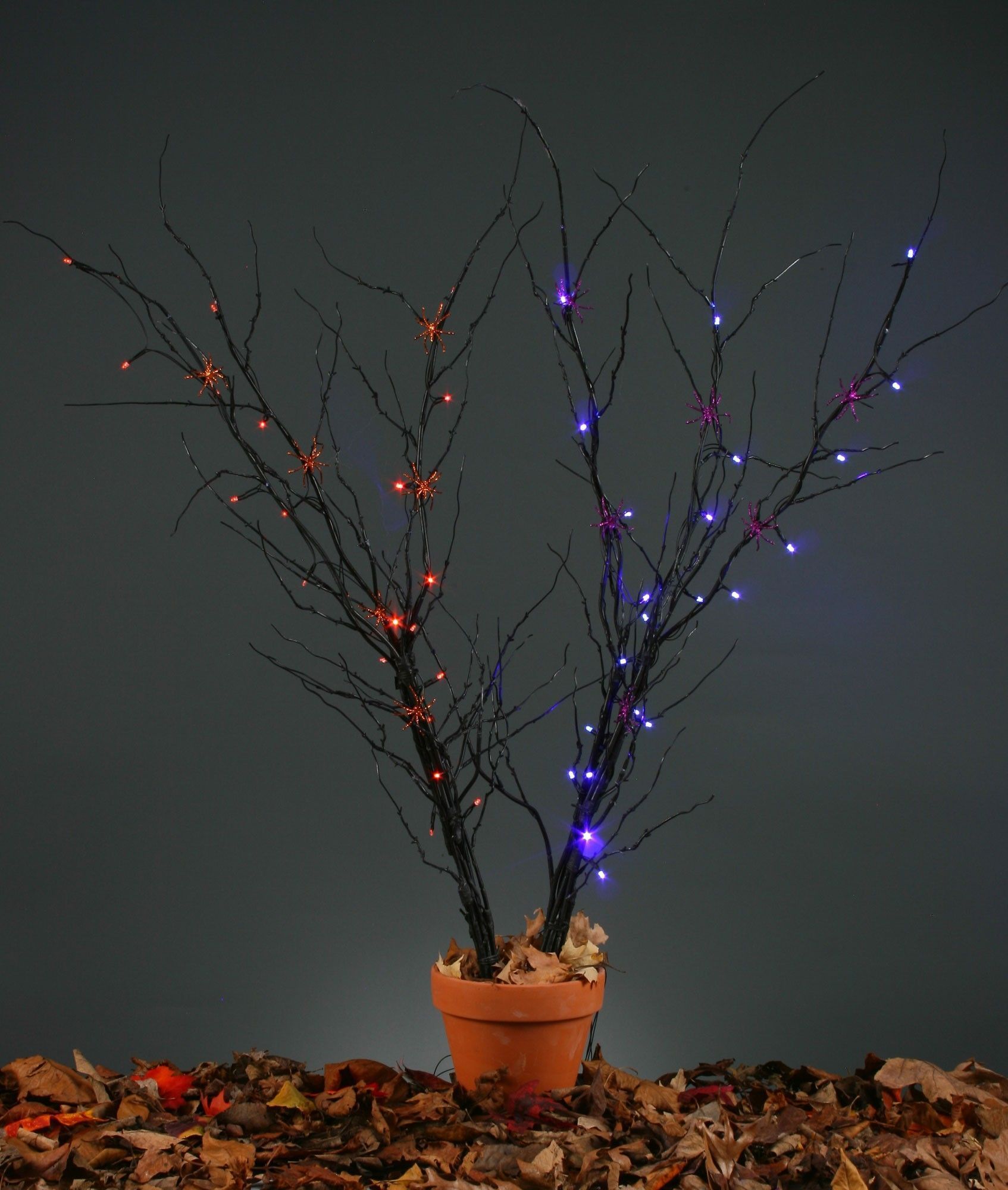 Жуткие фиолетовые светящиеся ветки - это черные ветки, длина которых составляет примерно 90 см. На ветках имеется шесть фиолетовых блестящих пауков, а также 22 светодиодные фиолетовые лампочки. Такое декоративное растение идеально украсит вашу комнату на Хэллоуин.
