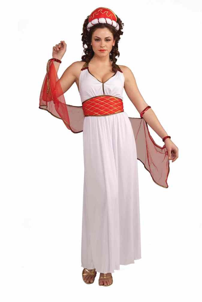 Взрослый карнавальный костюм богини Геры. Если вас пригласили на тематическую вечеринку посвященную античность, то выбрав этот костюм вы точно не прогадаете. Костюм выглядит просто замечательно и вы обязательно будете в центре всеобщего внимания. В комплект карнавального костюма богини Геры входит платье, пояс, головной убор и накидка.