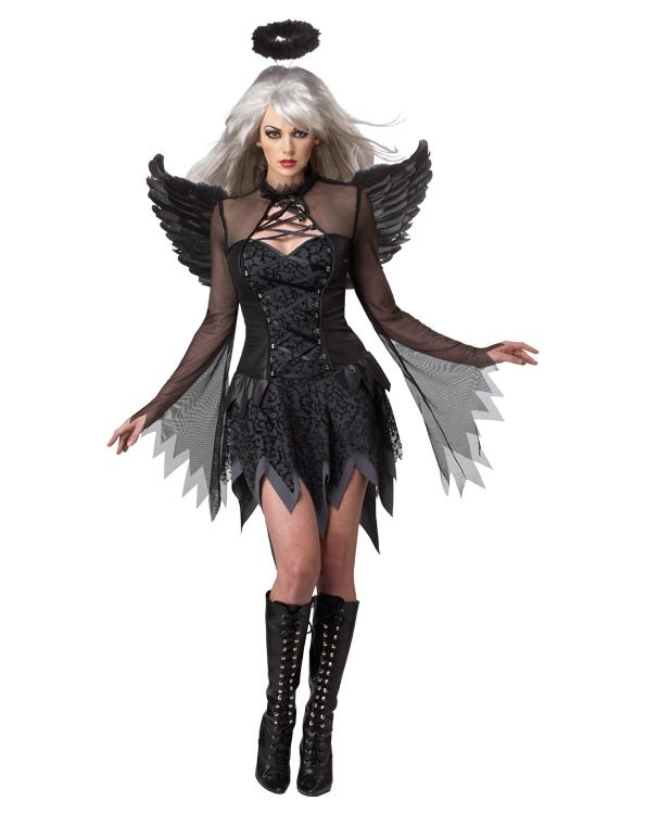 Роковой, соблазнительный и при этом сладостно-упоительный...костюм черного падшего ангела! Костюм выполнен из приятной на ощупь ткани - бифлекса. Она мягкая, хорошо облегает фигуру. В комплекте: платье, крылья и нимб.